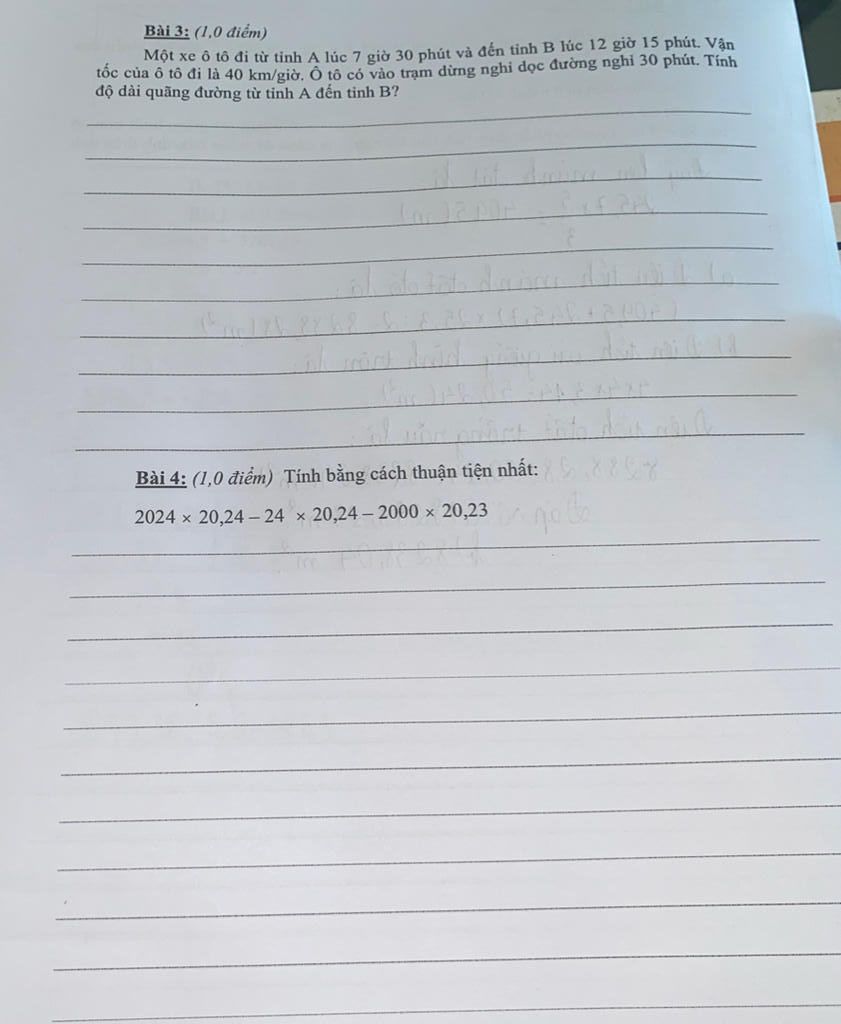 Thời gian ô tô đi từ tỉnh `A` đến tỉnh `B` ( không kể thời gian nghỉ) là:
