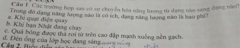 `a,` Khi quạt điện quay: Điện năng `->` Động năng `->` Nhiệt năng