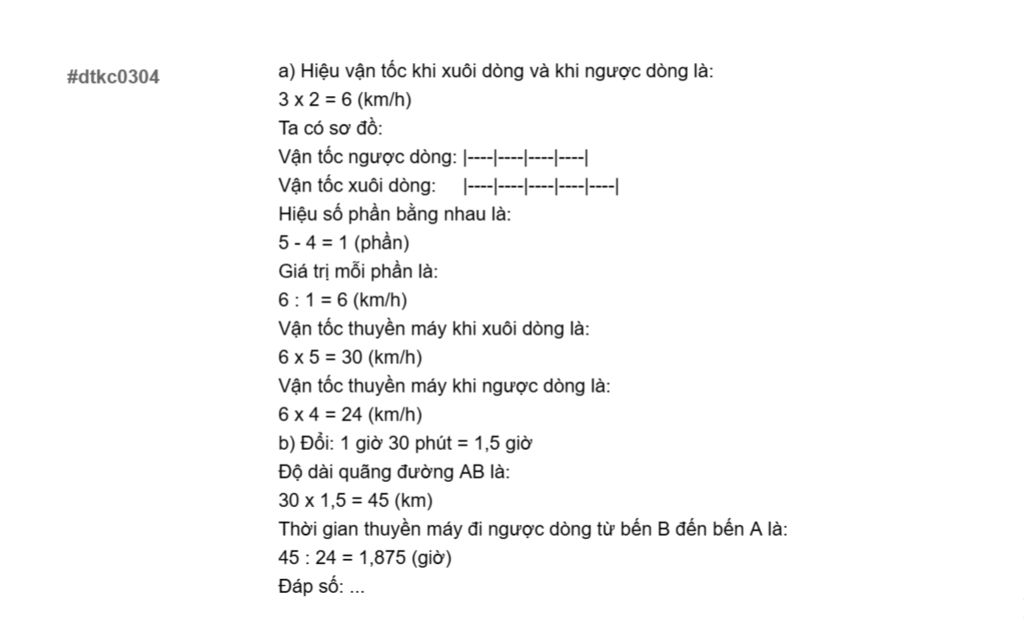 Vận tốc xuôi dòng: 30 km/h30km/h