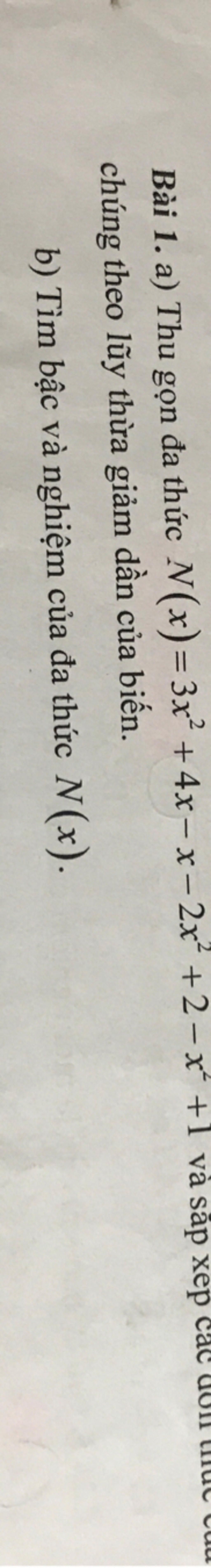 `a)` `*` Thu gọn và sắp xếp đa thức `N(x)` `:`