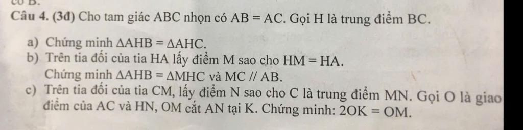 HB=HC(cmt) =>tam giác AHB = tam giác MHC