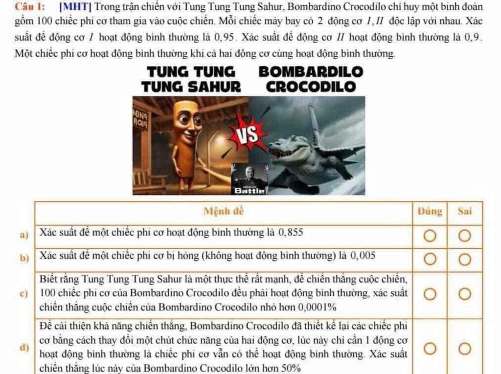 Xác suất để 1 động cơ hoạt động bình thường là: