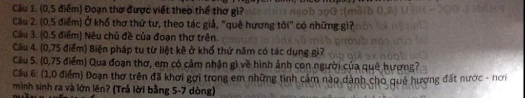 Câu 6: Qua đoạn thơ trên gợi cho em tình yêu quê hương đất nước, lòng biết ơn, tự hào của em đối với quê hương đất nước