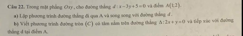 Đường thẳng song song với d và đi qua `A(1;2)` có dạng: