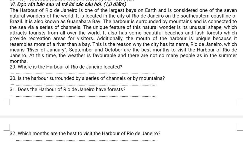 ` @ ` Dẫn chứng : September and October are the best months to visit the Harbour of Rio de Janeiro.