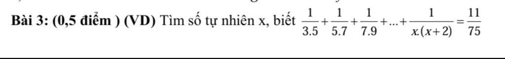 1/(3 . 5) + 1/(5 . 7) + 1/(7 . 9) + ... + 1/(x(x + 2)) = 11/75