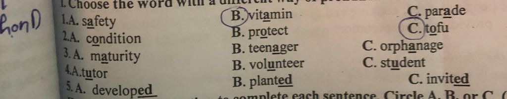 `3,A.` maturity `B.` teenager `C.` orphanage