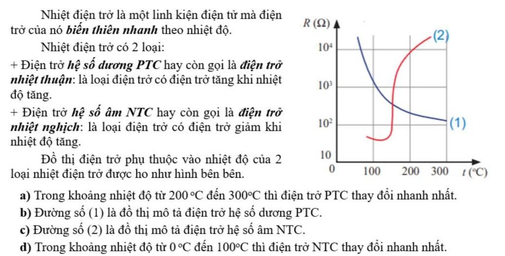 Từ đồ thị nhiệt độ từ $100^o→200^o$ điện trở thay đổi nhanh nhất.