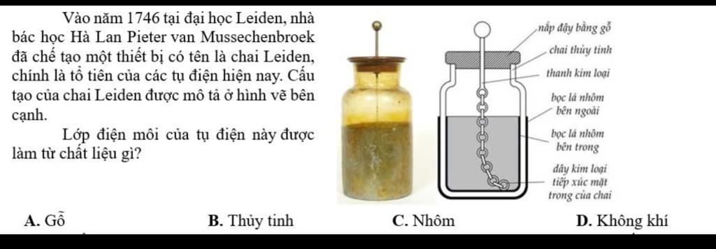 `-` Theo hình vẽ và mô tả, "chai thủy tinh" chính là lớp điện môi nằm giữa hai lớp bọc kim loại (nhôm).