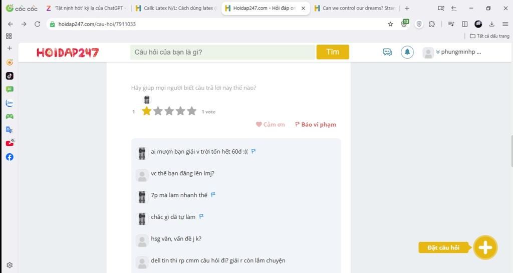 cốc cốc Z Tật nịnh hót kỳ lạ của ChatGPT - - Callic Latex N/L: Cách dùng latex H Hoidap247.com - Hỏi đáp D x H Can we control our dreams? Stran