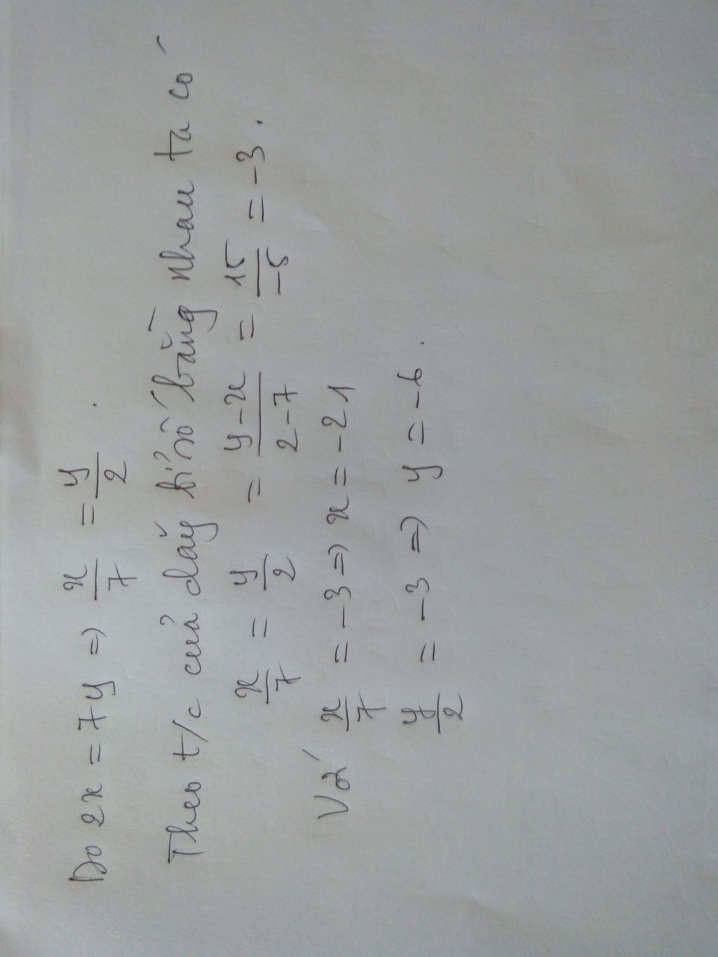 ta có:ta thay y= x+15 vào 2x=7y