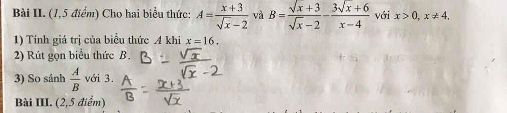 Bài II. (1,5 điểm) Cho hai biểu thức: A=- và B =