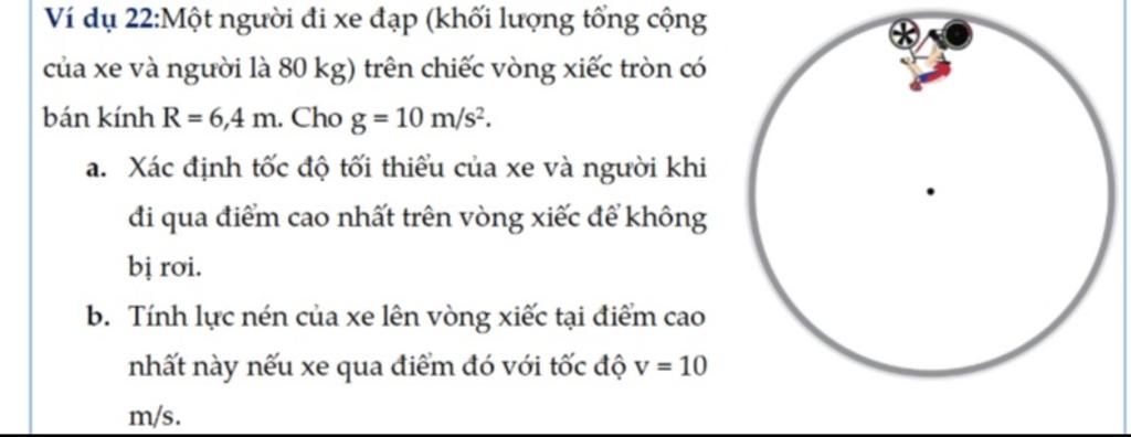 Lực nén của xe lên vòng xiếc tại điểm cao nhất này nếu xe qua điểm đó với tốc độ $v = 10 (m/s)$ là: