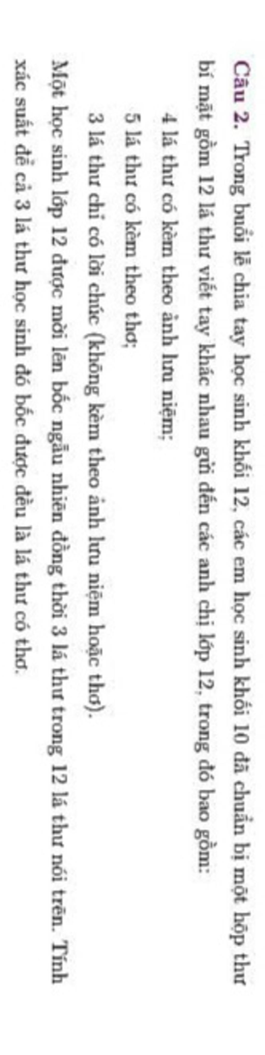 Gọi `A` là biến cố "Cả ba lá thư học sinh bốc được đều là lá thư có thơ".