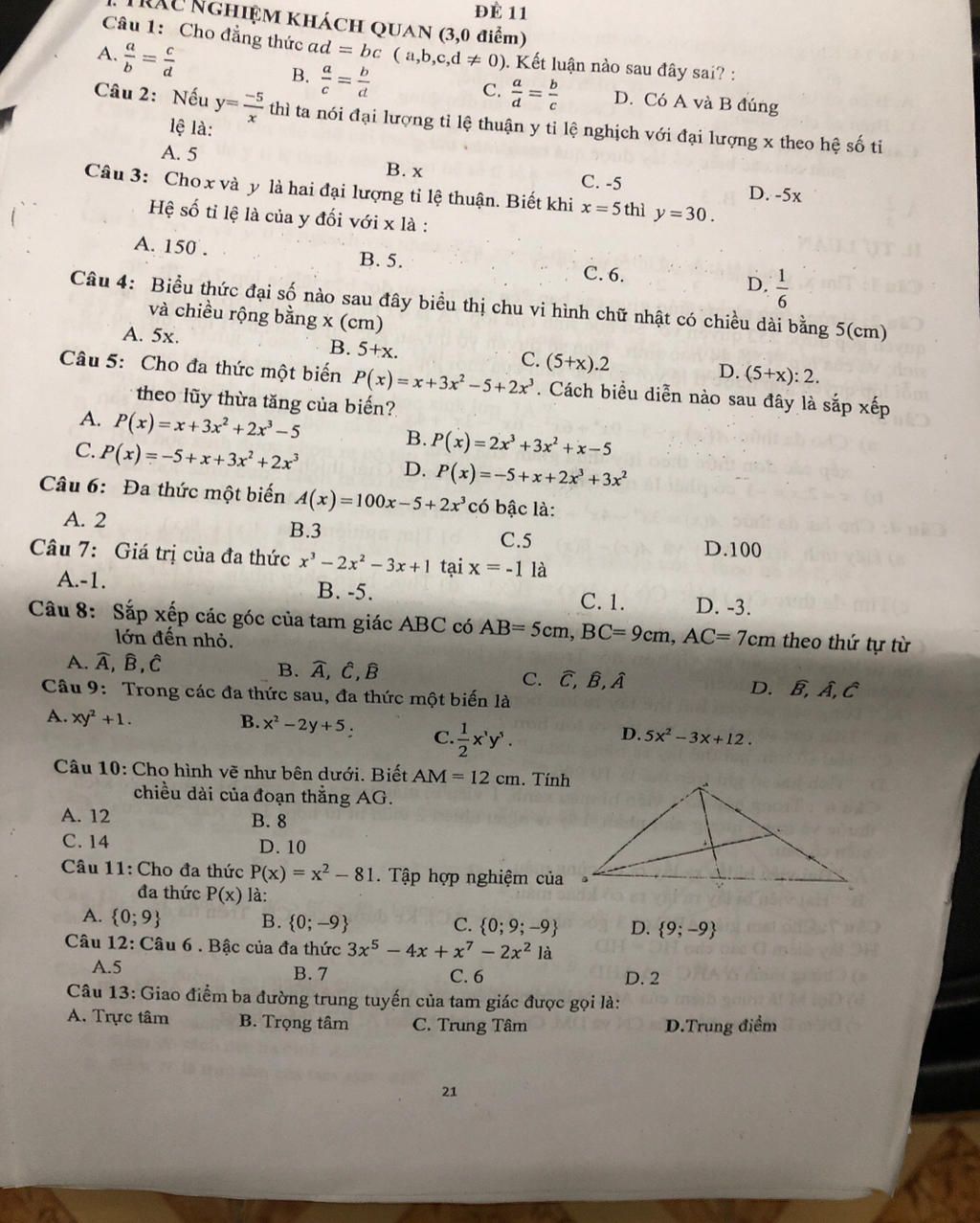 NGHIỆM KHÁCH QUAN (3,0 điểm)