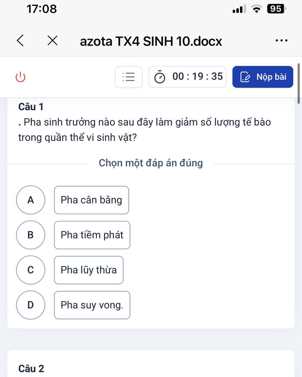`+` đây là pha vi sinh vật phân chia mạnh nhất