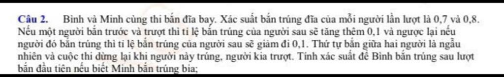 Khi đó, xác suất Bình bắn trúng sẽ tăng 0.1, thành 0.7 + 0.1 = 0.8.