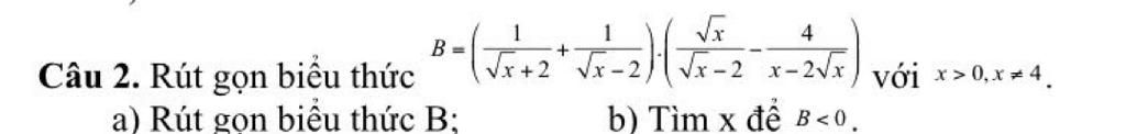 `a)B=(1/(sqrtx+2)+1/(sqrtx-2) ) .(sqrtx/(sqrtx-2)-4/(x-2sqrtx))(x>0;xne4)`