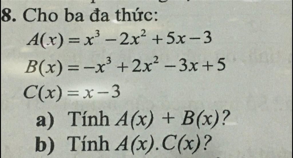 `b)` `A(x).C(x)=( x^3 - 2x^2 + 5x - 3 ) . (x-3)`