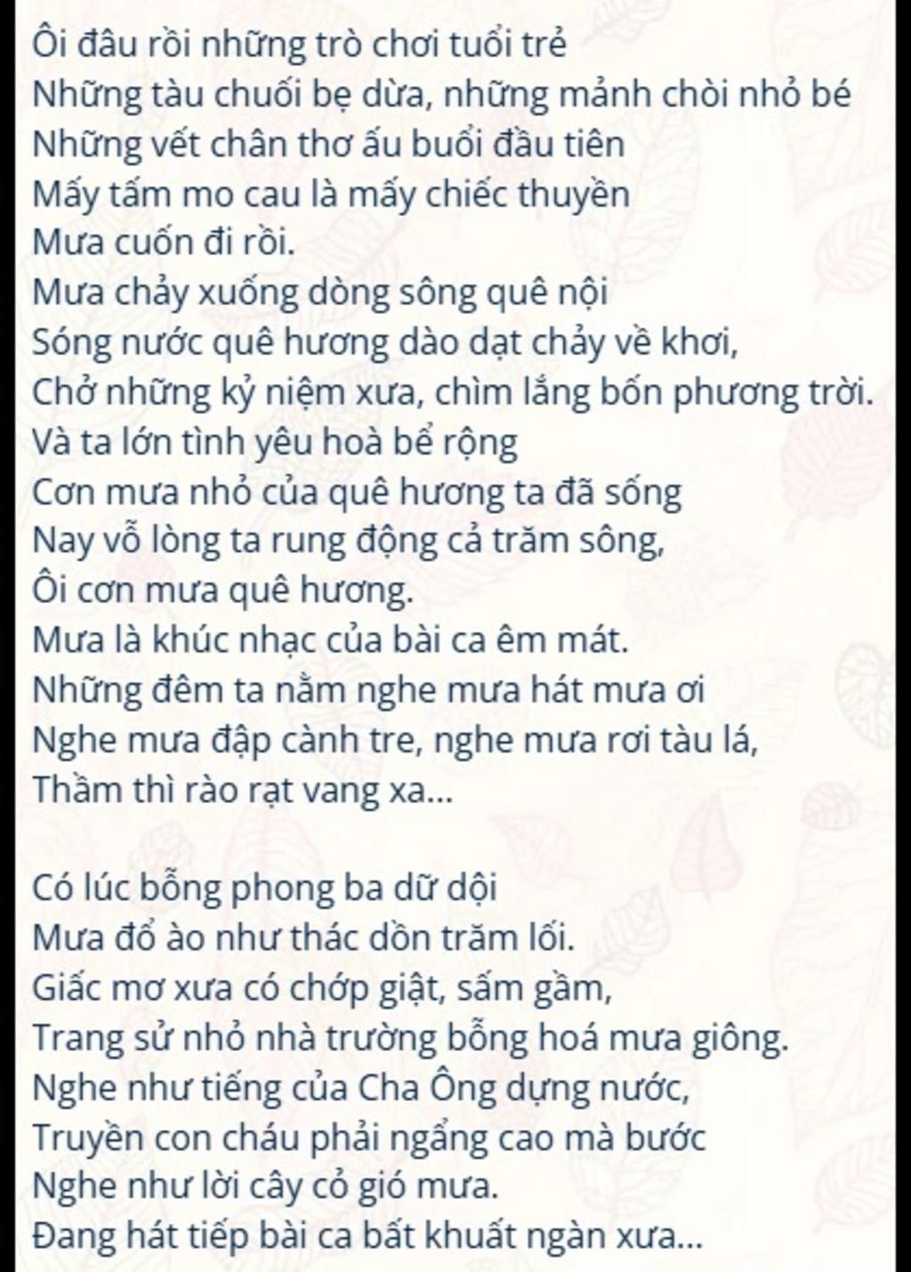 - Nhấn mạnh âm thanh + cảm xúc + ký ức gắn liền với cơn mưa.