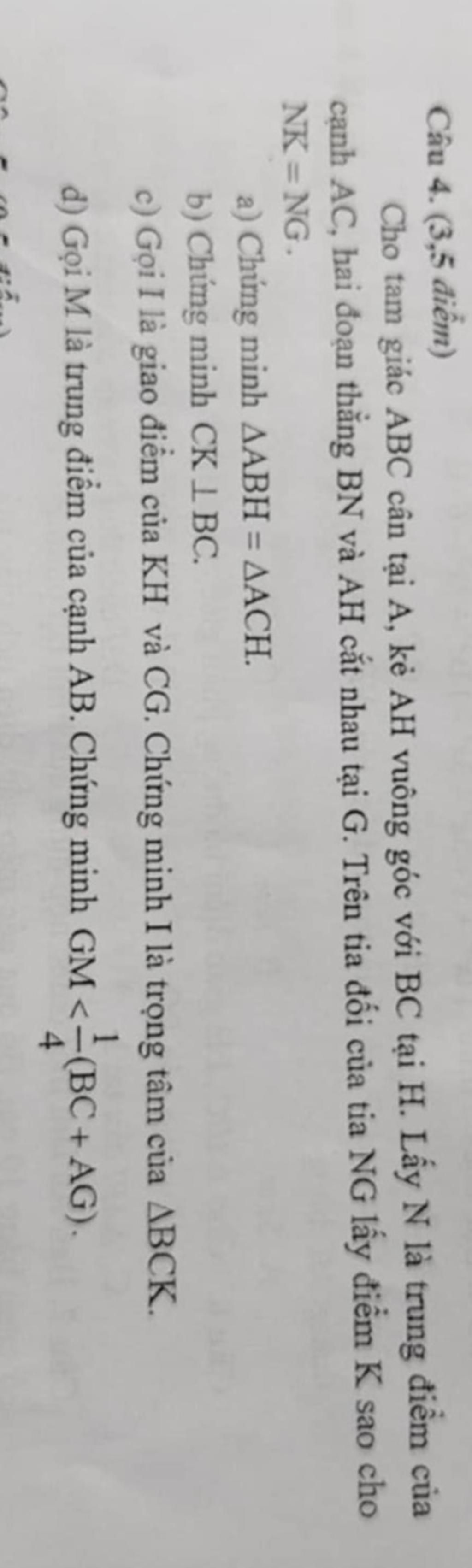 Câu 4. (3,5 điểm)