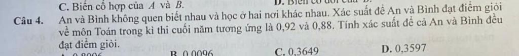 `->`Xác suất để cả An và Bình đều đạt điểm giỏi :