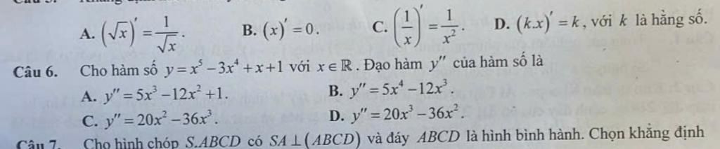 Cho hàm số y= x −3x* +x+1 với xe R. Đạo hàm ý” của hàm số là