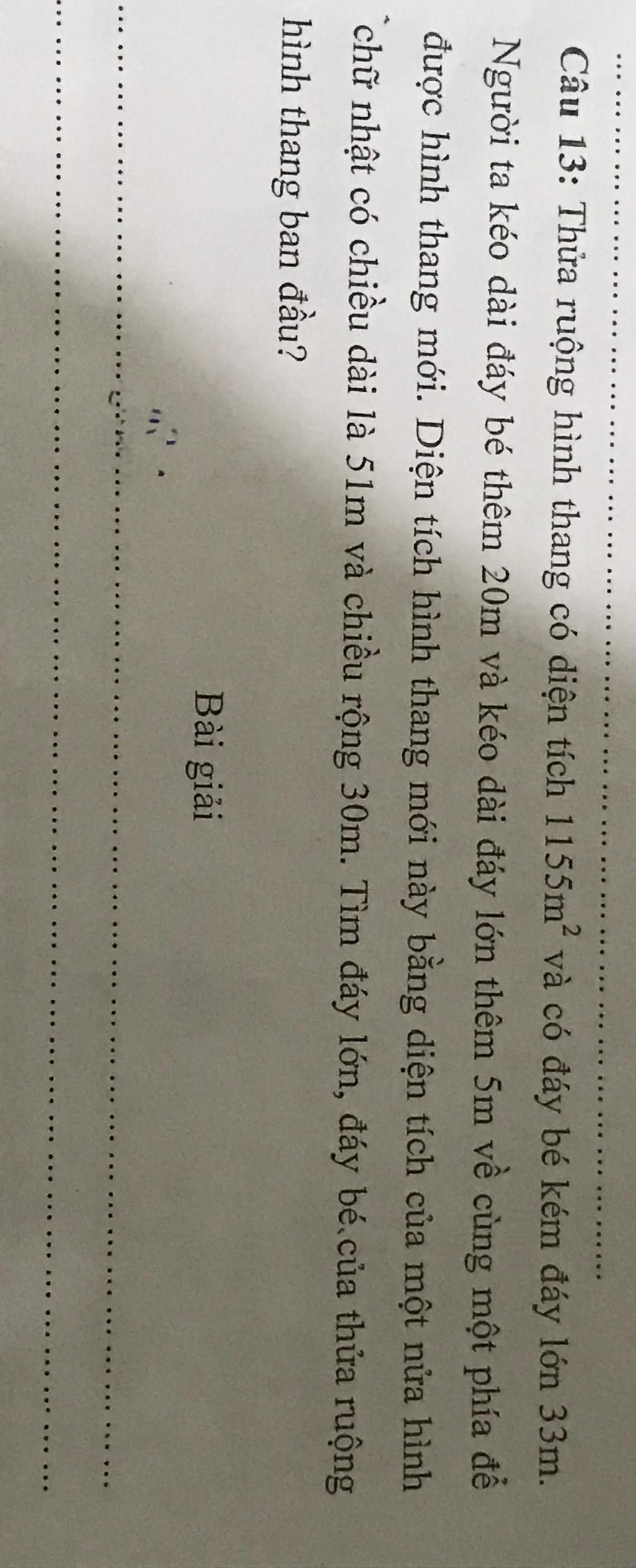 Đáy bé của thửa ruộng hình thang ban đầu là: