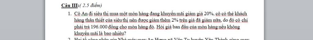 Giá món hàng sau khi giảm thêm 2%` là: