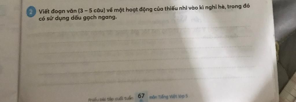 `@` Khi bước sang nghỉ hè `-` thời gian mà học sinh luôn mong chờ, đón chào là những hoạt động vui nhộn với những điều mới mẻ, tươi vui. Các em thiếu nhi thường tham gia những hoạt động như cắm trại, thả diều, chơi những trò chơi thể thao, ... Những hoạt động này không những giúp học sinh cảm thấy thoải mái mà còn giúp các em được giải trí sau `1` thời gian học đầy áp lực.