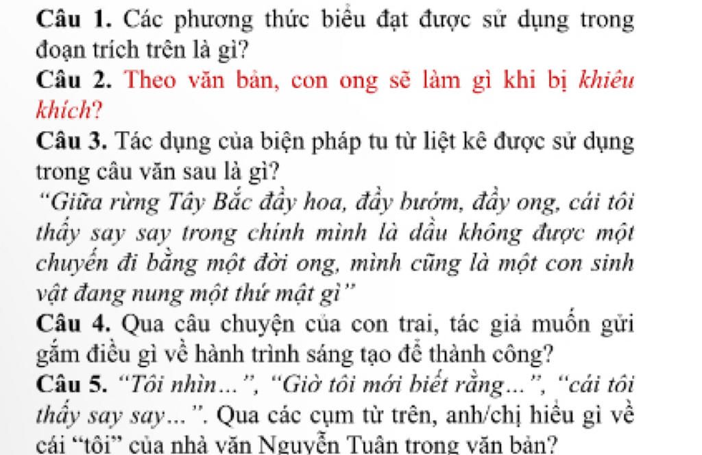 Giữa rừng Tây Bắc đầy hoa, đầy bướm, đầy ong, cái tôi thấy say say trong chính mình là dầu không được một chuyến đi bằng một đời ong, mình cũng là một con sinh vật đang nung một thứ mật gì. Sự tích lãy ở mình cũng ngày ngày có giọt ra mà phần nào đem thơm thảo vào sự sống. Đối hoa xuân lắng ong mật mà thêm ngẩm tới đàn bướm tốt mã chấp chới bay, lộng lẫy những sắc phần của sáo ngữ ồn ào. Bướm phù phiếm cũng bay vào hoa, nhưng cặp cánh hào nhoáng cũng chăng đê lại gì. Từ ngày có lịch sư tiên hóa của loài người, chưa ai dám nói đên mât bướm.
