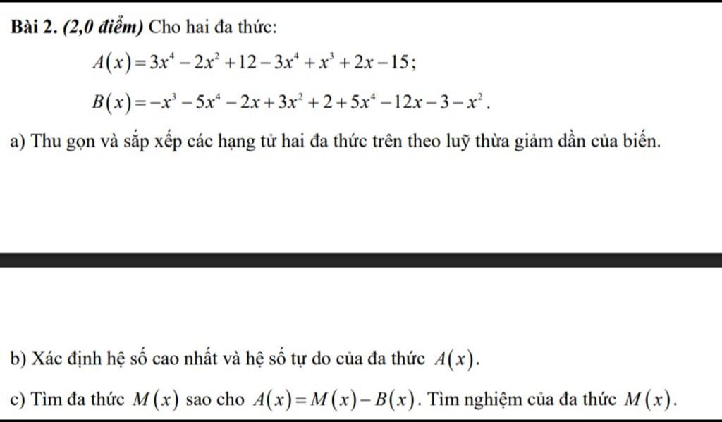 `c)`Ta có: `A(x) = M(x) - B(x)`