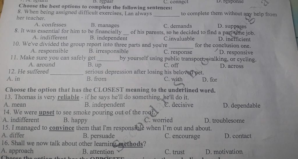 `-` reliable (adj) `=` dependable (adj): đáng tin cậy