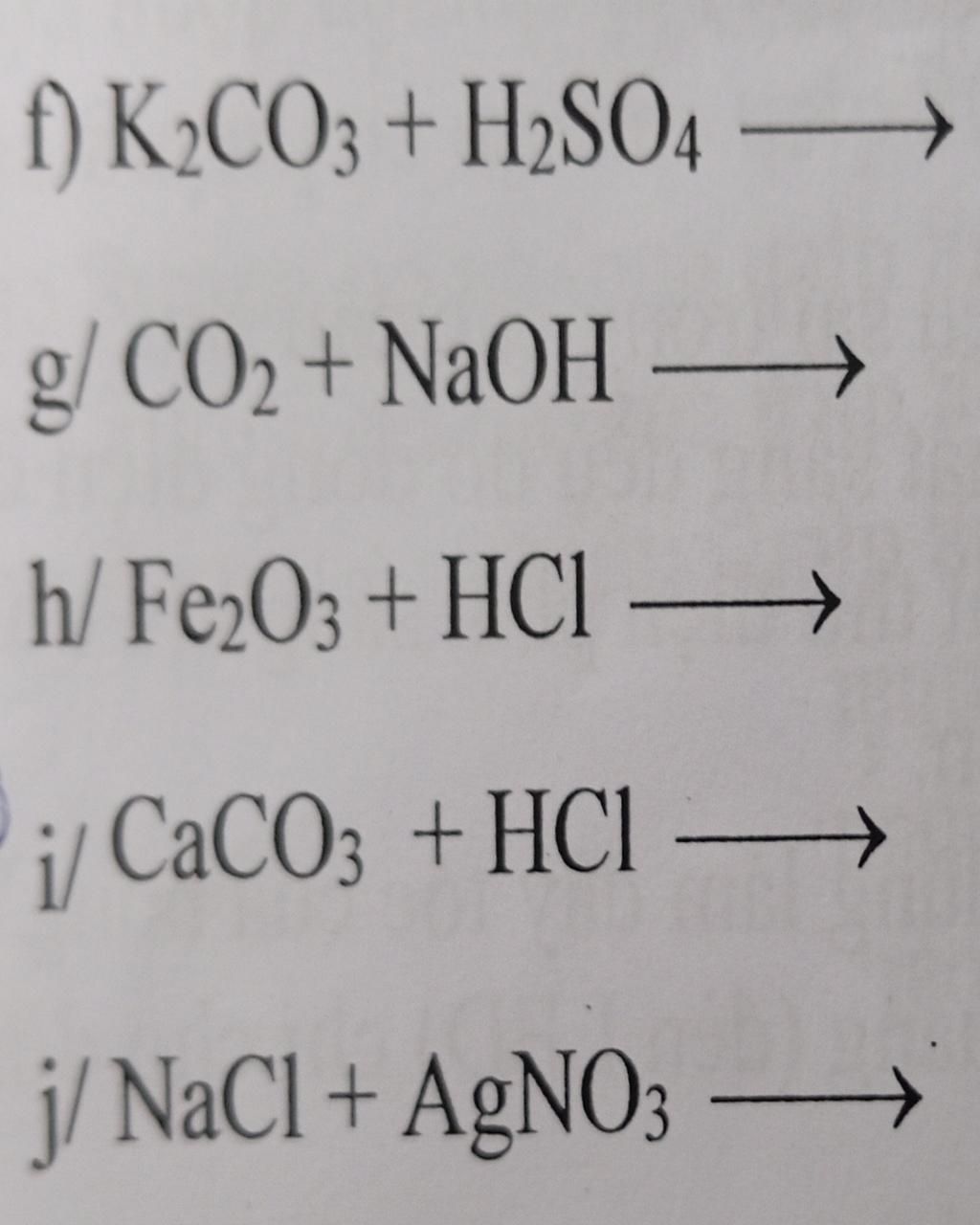 `g)` `CO_2 + 2NaOH \rightarrow Na_2CO_3 + H_2O`$\\$