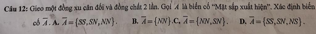 `Rightarrow` `\bar{A}`:"Mặt sấp không xuất hiện"