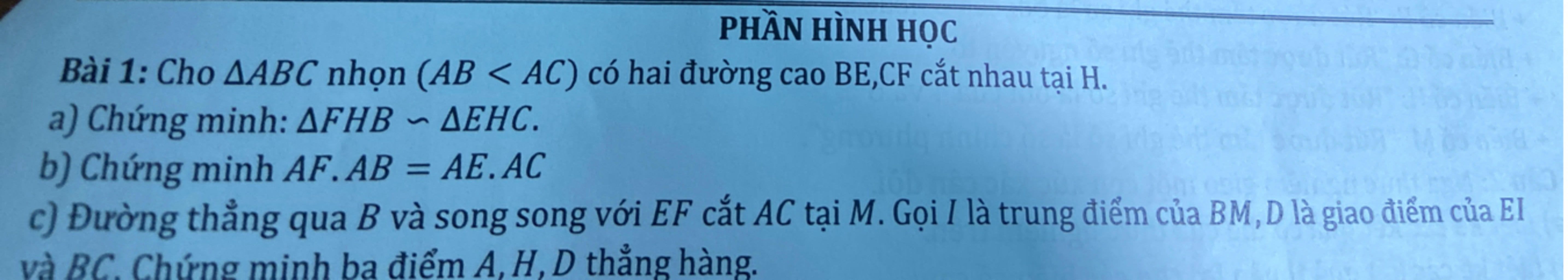 Từ câu a $\to \dfrac{HF}{HE}=\dfrac{HB}{HC}$
