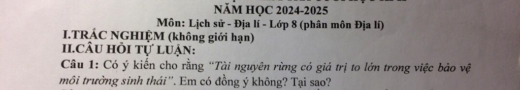 Em hoàn toàn đồng ý.Rừng có giả trị to lớn trong việc bảo vệ môi trường sinh thái vì: