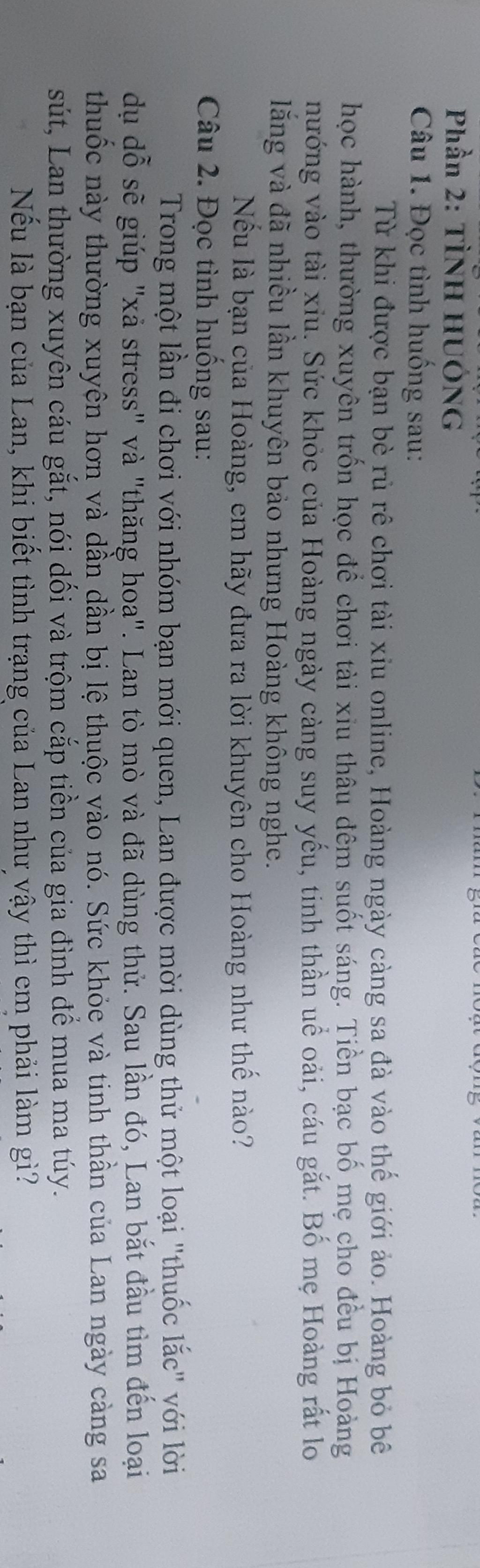 Nếu em là bạn của Hoàng,em sẽ khuyên nhủ bạn từ từ đồng thời giải thích tác hại để lại của việc chơi tài xỉu "Tiền mất tật mang"như thế nào.