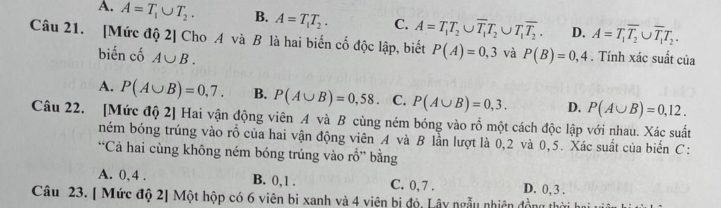 `P(A∪B)=P(A)+P(B)-P(A∩B)=0,3+0,4-0,12=0,58`