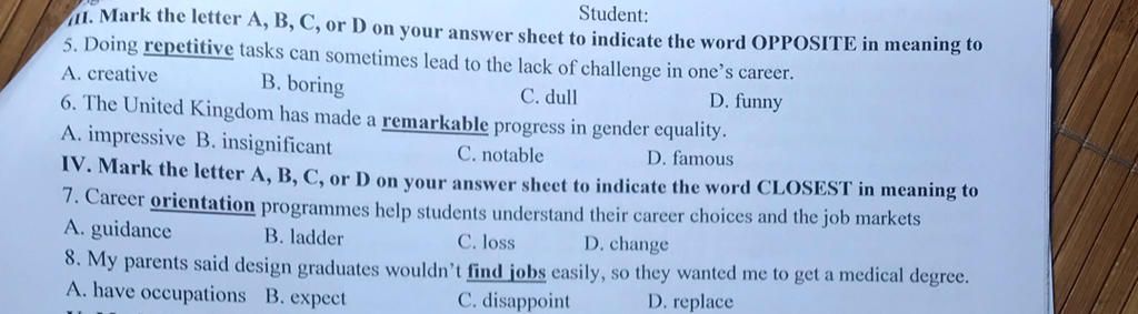`-` remarkable (a): đáng chú ý, đặc biệt >< insignificant (a): kh quan trọng, tầm thường