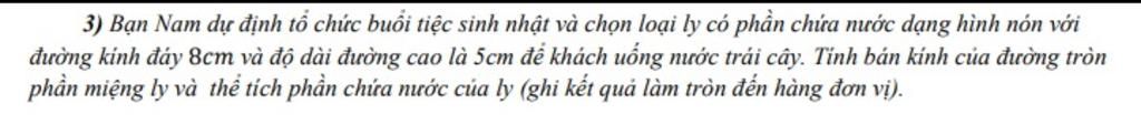 Bán kính hình tròn của phần miệng ly là: