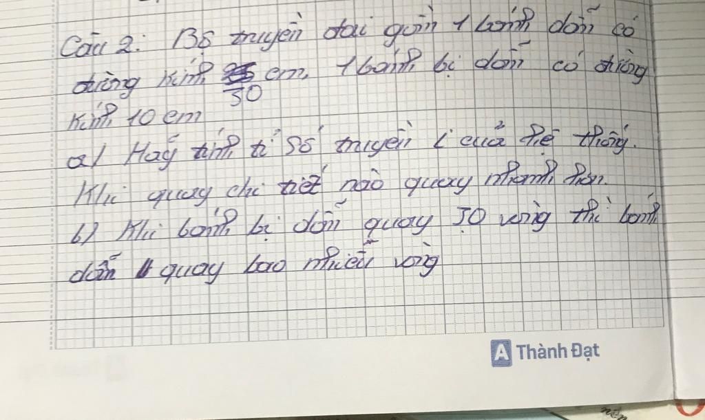 Khi bánh bị dẫn quay `30` vòng thì bánh dẫn sẽ quay số vòng là:
