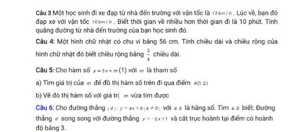 Câu 3 Một học sinh đi xe đạp từ nhà đến trường với vận tốc là 12km/h . Lúc về, bạn đó
