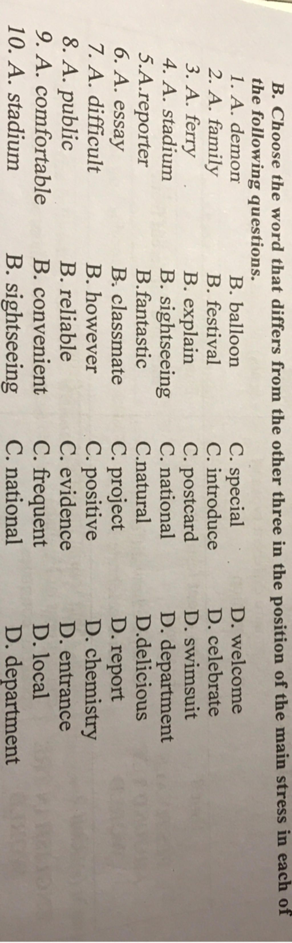 `1)` `B` ( âm `2` còn lại âm `1` )