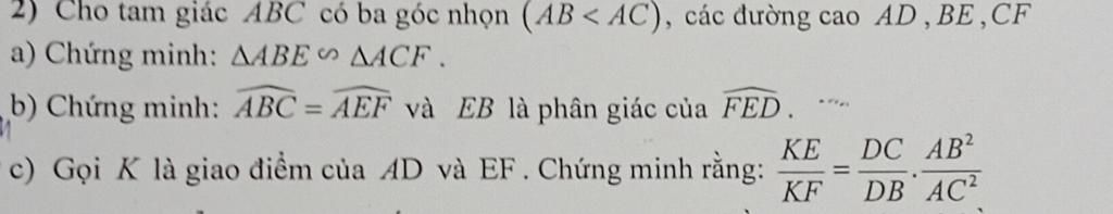 b) Xét tam giác AEF và tam giác ABC, ta có: