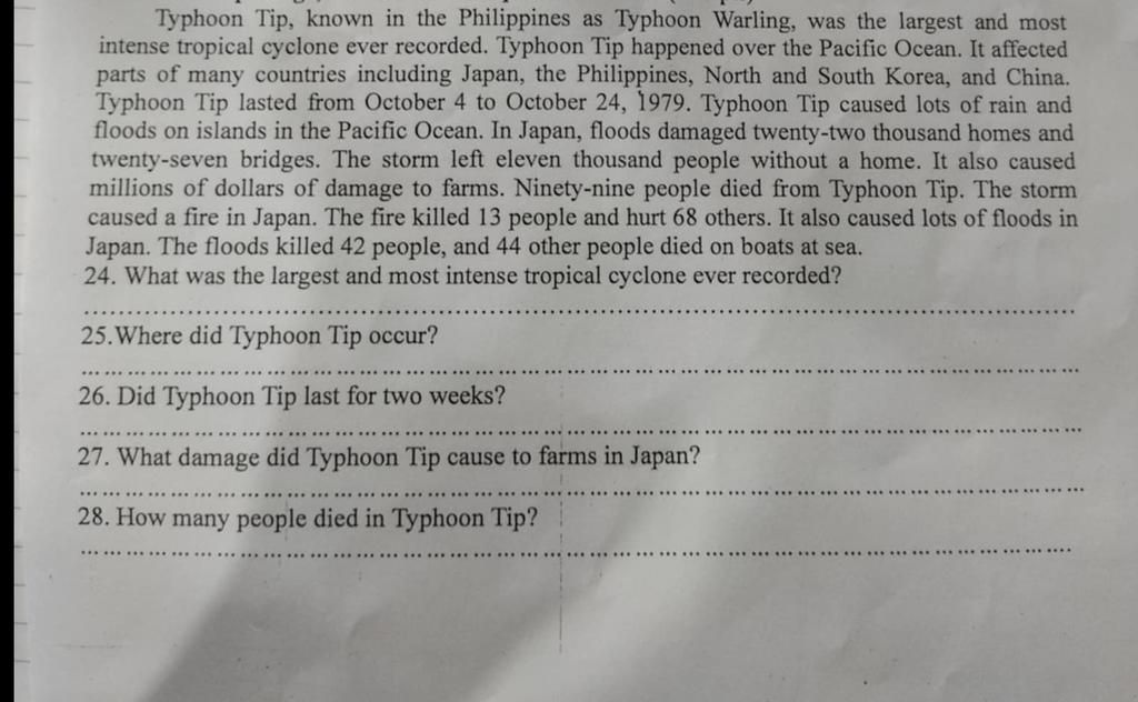 Dẫn chứng: Typhoon Tip, know in the Philipines as Typhoon Warling, was the largest and most intense tropical cyclone every recorded.