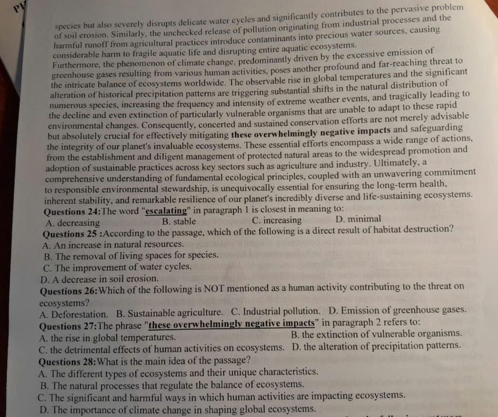 - these overwhelmingly negative impacts = the detrimental effects of human activities on ecosystems. (những tác động tiêu cực to lớn này = tác động có hại của hoạt động của con người lên