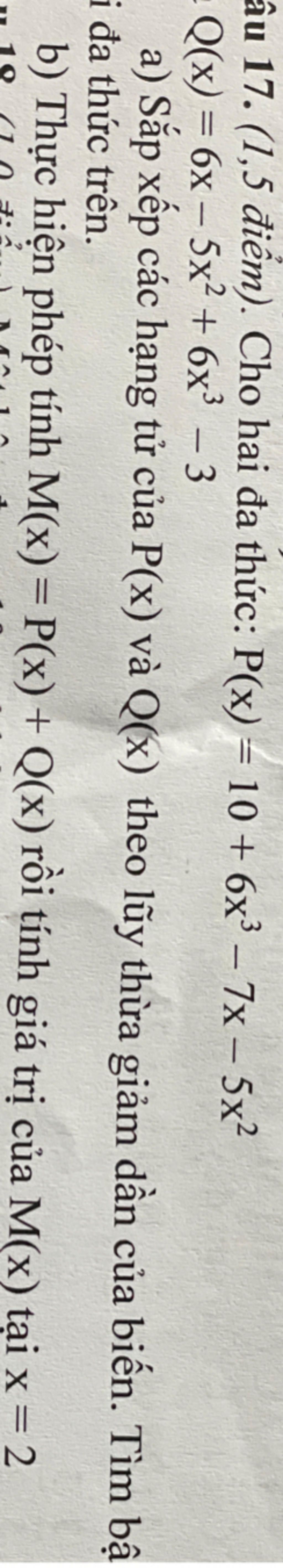 Vậy M(x) = $12^{3}$ - $10 ^{2}$ - x +7