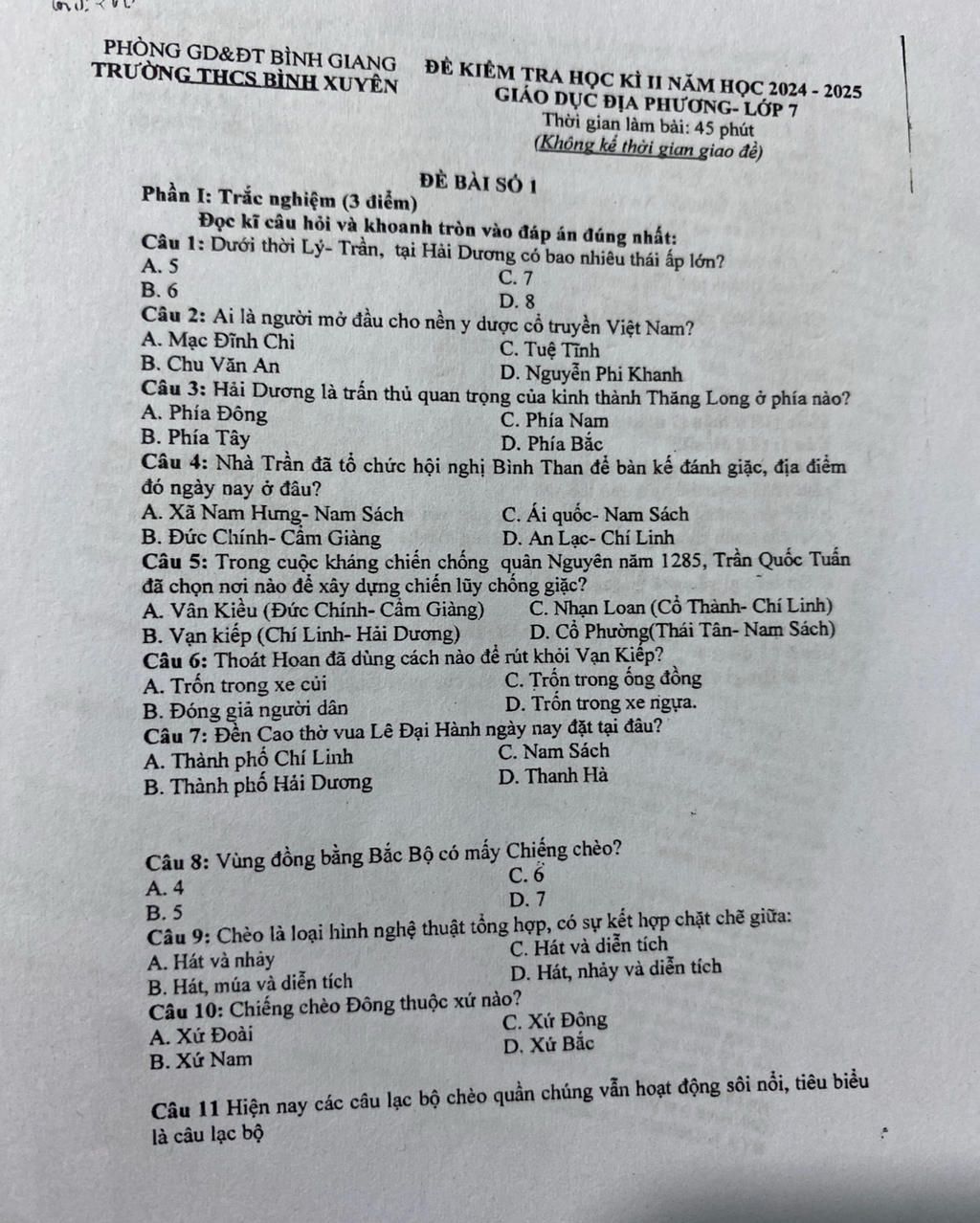GIÁO DỤC ĐỊA PHƯƠNG- LỚP 7
