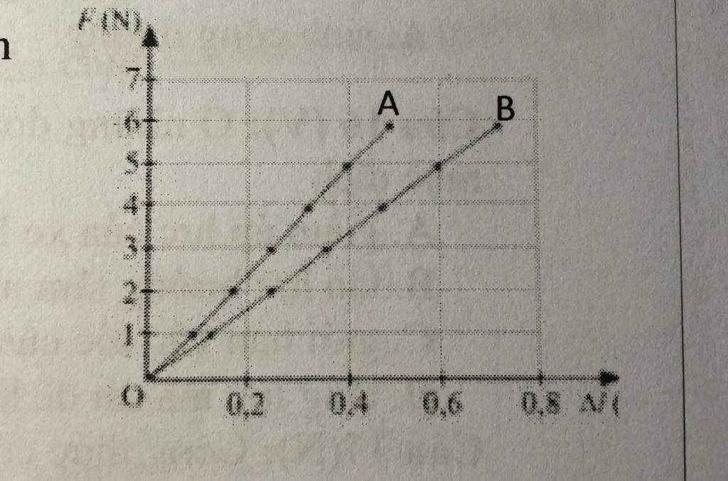 Nhưng xét về độ dãn thì với lực `6N` lò xo `A` dãn ra `0.2m`, lò xo `B` dãn ra hơn `0.7m`